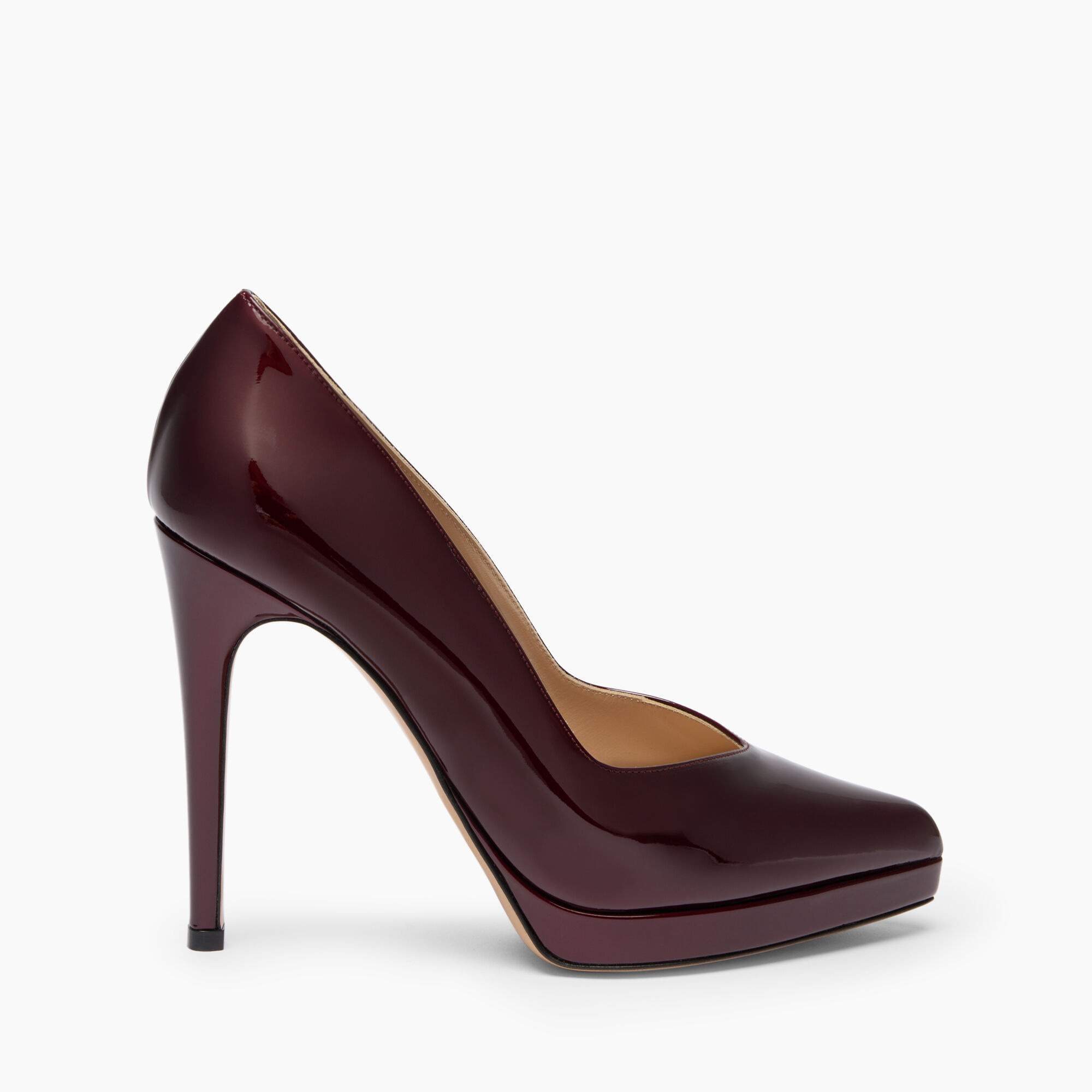 With a slightly walled pointed toe shape, this pump features a 2-cm platform and a thin but not too thin heel, it is a symbol of freedom and strength for all women. The special feature is the samurai material, a black cherry-colored patent leather that features a delicate metallization that can enhance the colors and shine of the model. Details - Patent leather with soft metallic finish to highlight the colour and brilliance - 100% Calf - Patent leather covered heel 100 mm / 3.9 inches with plateau 20 mm / 0.7 inches - 100% Made In Italy - Code: 1F013A1001SAMUR4408