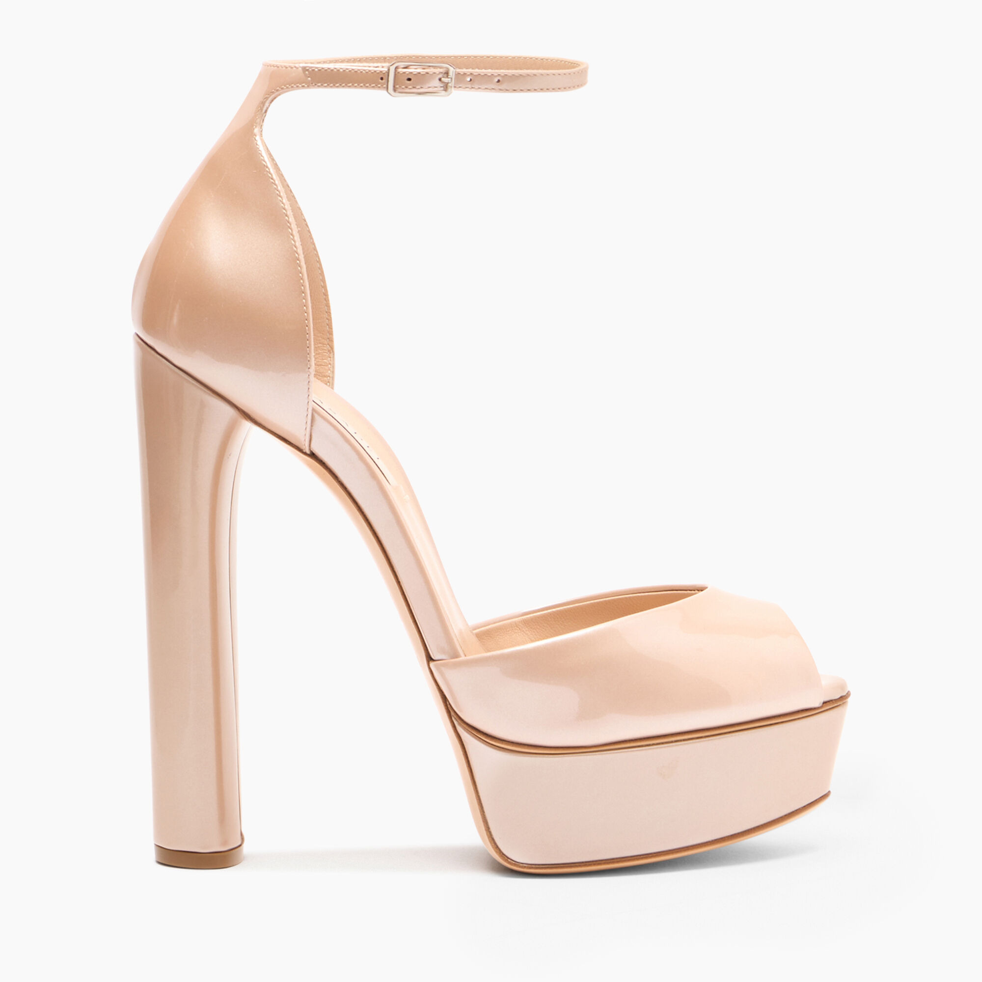 For those who love heights, Casadei presents its iconic Flora platform in samurai, a sand-colored patent leather that features a delicate metallization that can enhance the colors and shine of the model. This sandal, featuring a vertiginous chunky heel well balanced by a comfortable platform, secures at the ankle with a thin strap. It enhances the feminine silhouette, imparting sensuality and elegance. Details - Patent leather with soft metallic finish to highlight the colour and brilliance - 100% Calf - Patent leather covered heel 140 mm / 5.5 inches with plateau 40 mm / 1.5 inches - 100% Made In Italy - Code: 1L287Y1401SAMUR3203
