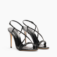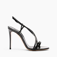 For all those who love to shine with sophistication, Casadei presents the Starsway sandal in black patent leather. Its play of luminous reflections creates a unique sparkling effect, catching every eye. The asymmetrical lines that wrap around the foot are embellished with tiny glimmers, similar to the sparkle of diamonds, adding a touch of magic. With the 10 cm Julia heel, this model will become a must-have in your wardrobe, ready to make you shine on any occasion! Details - Patent leather - 100% Calf - Patent leather covered heel 100 mm / 3.9 inches - 100% Made In Italy - Code: 1L402A1001T05369000