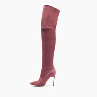Made in Italy, these over-the-knee boots in reinassance-colored suede, one of the season's top colors, wrap around the leg like a second skin. Completing the look, the eye-catching, iconic Blade heel and sharp toe shape give a sleek, ultra-feminine effect. Details - Suede - 100% Kid - Blade heel in stainless steel 100 mm / 3.9 inches - 100% Made In Italy - Code: 1T908L100TT00054507