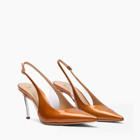 For Spring/Summer 2026, Maison Casadei presents the iconic Superblade slingback in metallic topaz patent leather with an 8 cm Blade heel, designed to meet the needs of busy women who still want to look feminine and sensual. The vinyl detail adds lightness to the shoe. Designed for women who want to feel strong and flawless on every occasion—from elegant evenings to the most special moments. A shoe with a bold character, ideal for those who love the perfect balance between power and femininity. Details - Patent leather - 100% Calf - Blade Heel In Real Steel 80 Mm/ 3.1 Inches - 100% Made in Italy - Code: 1G590X080MC29242309