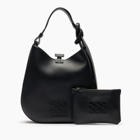 A synthesis of bold elegance and functionality, the black leather Vandome Bag stands out for its contemporary design and strong identity. The iconic C-Chain logo signs the model with a distinctive touch, while the oversized woven knot adds a bold and sculptural element. More than just an aesthetic detail, the knot is designed to conveniently adjust the length of the shoulder strap, offering versatility and style in a single gesture. Perfect for accompanying urban and refined looks, it is the ideal companion for those seeking an accessory with character. Details - Nappa leather - Height 35 cm – Width 32 cm – Depth 8 cm – Bag Handle 40 cm – Pouch: Width 21 cm – Height 15 cm - 100% Calf - 100% Made In Italy - Code: 3W483A0000VDMNO9000