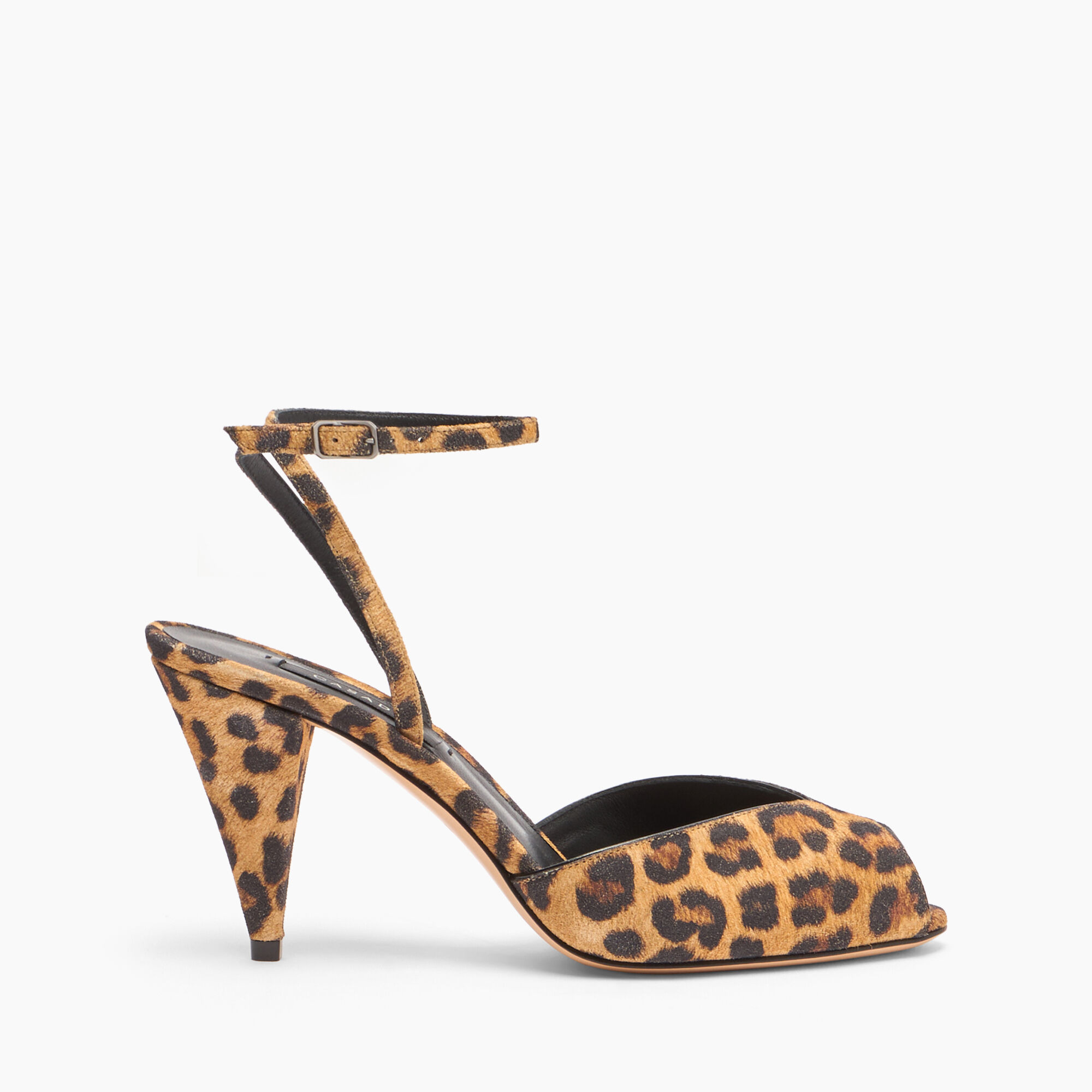 Inspired by the 1980s, Casadei elegantly reinterprets a timeless classic, presenting the Venus Malesia slingback, a reinterpretation of the iconic 1982 model. The 8-cm cone heel and peep-toe detail give this shoe a sophisticated modernity with a homage to the past. The pattern that opens to a collar on the front of the shoe makes it intriguing and prissy. Suede leather with a leopard-effect print gives the model a perfect balance of sophistication and grit. Details - Suede with leopard-effect digital photo print - 100% Calf - Leather covered heel 80 mm / 3.1 inches - 100% Made In Italy - Code: 1L406A0801T0540B032