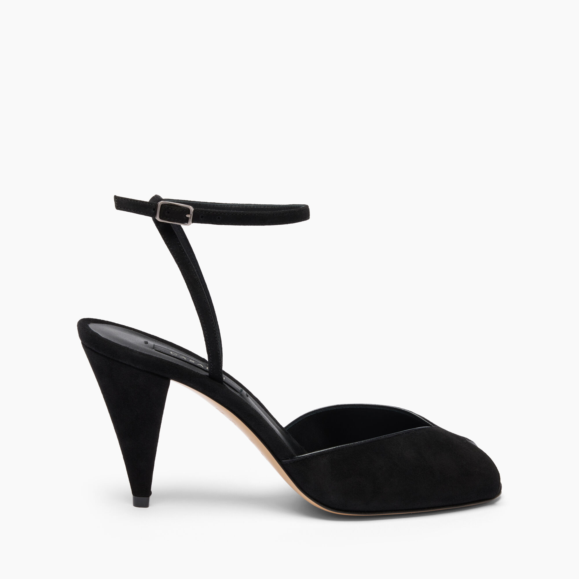 Inspired by the 1980s, Casadei elegantly reinterprets a timeless classic, presenting the Venus slingback in black suede, a reinterpretation of the iconic 1982 model. The 8-cm cone heel and peep-toe detail give this shoe a sophisticated modernity with a homage to the past. Details - Suede, nappa leather - 100% Kid - Leather covered heel 80 mm / 3.1 inches - 100% Made In Italy - Code: 1L406A0801T05399000