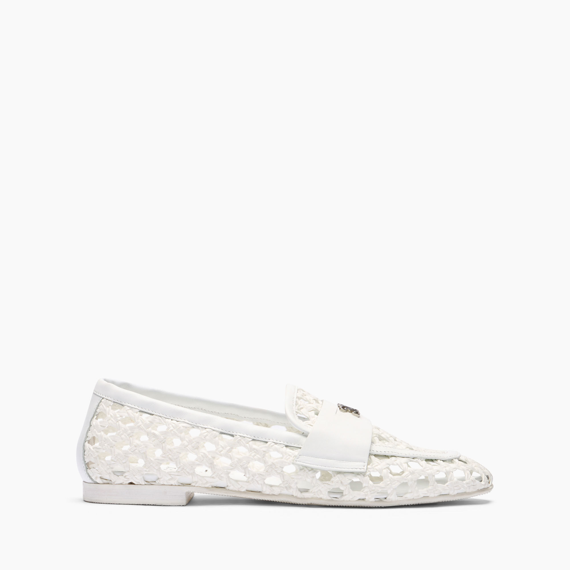 Give your feet the comfort they deserve during the hottest season of the year with the Casadei loafer. Made with an elegant weave of white vegan leather stripes, this model offers unparalleled pampering thanks to slits that ensure perfect breathability. The Maison's iconic c-chain logo adds a distinctive and inimitable touch. The rubber sole ensures lasting comfort, making these loafers the ideal accessory for hot summer days. Details - Vegan leather strips interweaving - 70% Polyurethane 17% Polyester 13% Cotton - Rubber Bottom. - 100% Made In Italy - Code: 1D278J0101C19679999