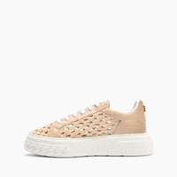 Your casual chic look has finally found its perfect ally: the Off Road Versilia sneaker in the delicate pink beach variant. Like a work of art, the leather is harmoniously interwoven, creating the most desired model for Casadei women. The bas-relief chain, now a distinctive symbol of all the brand's rubber bottoms, is carved into the ground like off-road tires, ensuring excellent grip. The iconic C-Chain logo in high relief leather makes this sneaker an authentic must-have for the season. Details - Vegan leather strips interweaving - 70% Polyurethane 17% Polyester 13% Cotton - 20Mm / 0.7 Inches Oversized Rubber Shoe Bottom With Bas-Relief Chain. - 100% Made In Italy - Code: 2X951V0201C19673301