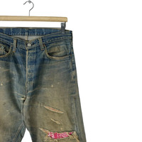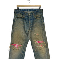 LEVI’S 501 RINDEN PATCHWORK DENIM JEANS PANTS Recommended Size M (Medium) Waist : 33 inch Length pants(out) : 40 inch Material: Cotton 100% Good Condition ATTENTION : Please pay close attention to measurements provided. Do not rely on tag size as pre-worn items may have been altered, stretched or shrunk & vintage sizes do not directly translate the modern sizes.The best way to ensure a correct fit is to compare our measurements with the measurements of a similar item that you know fits you well.Please enlarge the photos for clearer image. WE ARE USING DHL EXPRESS, IT TAKES 3-5 DAYS ONLY TO ARRIVE. PLEASE LEAVE YOUR PHONE NUMBER ON THE NOTE WHILE MAKE A PURCHASE. Etc: Don’t Worry About Customs Tax or Fees. I usually Declare all Items as ‘Gift’ & Declare Value of Item Lower than Original Price. All Items are Sold “AS IS” so Please be Sure to Read The Entire Description and Look at All The Pictures. Any Question and More Details Please Don’t Hesitate to Contact Me. Code H47