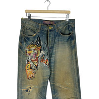 πΊπΊπΊπΊπΊπΊπΊπΊπΊπΊπΊπΊπΊ PLEASE ASK ANY QUESTION BEFORE BUYING!!! THIS IS USED CLOTHING!!! PLEASE DONT EXPECTED IT TO BE LIKE NEW OR IN PRISTINE CONDITION!!! πππππππππππππ CHRISTIAN AUDIGIER LIMITED EDITION TIGERS DENIM JEANS Recommended Size M (Medium) Waist : 34 inch Length pants(out) : 41 inch Material: Cotton 100% Good Condition ATTENTION : Please pay close attention to measurements provided. Do not rely on tag size as pre-worn items may have been altered, stretched or shrunk & vintage sizes do not directly translate the modern sizes.The best way to ensure a correct fit is to compare our measurements with the measurements of a similar item that you know fits you well.Please enlarge the photos for clearer image. WE ARE USING DHL EXPRESS, IT TAKES 3-5 DAYS ONLY TO ARRIVE. PLEASE LEAVE YOUR PHONE NUMBER ON THE NOTE WHILE MAKE A PURCHASE. Etc: Donβt Worry About Customs Tax or Fees. I usually Declare all Items as βGiftβ & Declare Value of Item Lower than Original Price. All Items are Sold βAS ISβ so Please be Sure to Read The Entire Description and Look at All The Pictures. Any Question and More Details Please Donβt Hesitate to Contact Me. Code H42