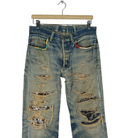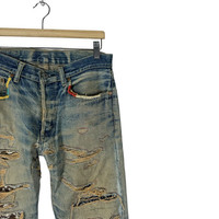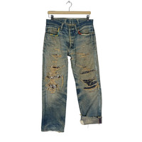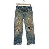 H.R MARKET BORO DENIM JEANS PANTS LIKE KAPITAL Recommended Size M (Medium) Waist : 32 inch Length pants(out) : 38.5 inch Material: Cotton 100% Good Condition ATTENTION : Please pay close attention to measurements provided. Do not rely on tag size as pre-worn items may have been altered, stretched or shrunk & vintage sizes do not directly translate the modern sizes.The best way to ensure a correct fit is to compare our measurements with the measurements of a similar item that you know fits you well.Please enlarge the photos for clearer image. WE ARE USING DHL EXPRESS, IT TAKES 3-5 DAYS ONLY TO ARRIVE. PLEASE LEAVE YOUR PHONE NUMBER ON THE NOTE WHILE MAKE A PURCHASE. Etc: Don’t Worry About Customs Tax or Fees. I usually Declare all Items as ‘Gift’ & Declare Value of Item Lower than Original Price. All Items are Sold “AS IS” so Please be Sure to Read The Entire Description and Look at All The Pictures. Any Question and More Details Please Don’t Hesitate to Contact Me. Code H48