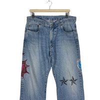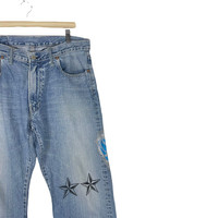 πΊπΊπΊπΊπΊπΊπΊπΊπΊπΊπΊπΊπΊ PLEASE ASK ANY QUESTION BEFORE BUYING!!! THIS IS USED CLOTHING!!! PLEASE DONT EXPECTED IT TO BE LIKE NEW OR IN PRISTINE CONDITION!!! πππππππππππππ HR MARKET BLUE BLUE PAINT ART DENIM JEANS Recommended Size L (Large) Waist : 36 inch Length pants (out) : 44 inch Material: Cotton 100% Good Condition 8/10 ATTENTION : Please pay close attention to measurements provided. Do not rely on tag size as pre-worn items may have been altered, stretched or shrunk & vintage sizes do not directly translate the modern sizes.The best way to ensure a correct fit is to compare our measurements with the measurements of a similar item that you know fits you well.Please enlarge the photos for clearer image. WE ARE USING DHL EXPRESS, IT TAKES 3-5 DAYS ONLY TO ARRIVE. PLEASE LEAVE YOUR PHONE NUMBER ON THE NOTE WHILE MAKE A PURCHASE. Etc: Donβt Worry About Customs Tax or Fees. I usually Declare all Items as βGiftβ & Declare Value of Item Lower than Original Price. All Items are Sold βAS ISβ so Please be Sure to Read The Entire Description and Look at All The Pictures. Any Question and More Details Please Donβt Hesitate to Contact Me. Code 147