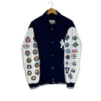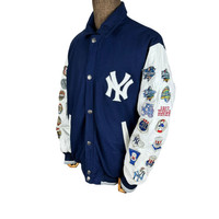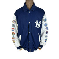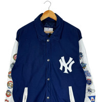 NEW YORK YANKEES LEATHER VARSITY JACKET tag MLB material Wool 67% Viscose 33% saiz on tag M (Medium) Mesasures About ( Approximately) -Armpit to Ampit : update inch -Length (back collar down) : updated inch Condition : used good condition 7/10 **No Tears No Stains And No Hole** **Has a a little damage at sleeve see a picture details** 🎈PLEASE READ THE DESCRIPTION AND POLICY BEFORE BUYING 🎈ALL ITEM WILL BE SHIPPED WITHIN 3-5 BUSINESS DAY AFTER RECEIVING CLEARED PAYMENT WE ARE USING POS DHL EXPRESS AND FEDEX WITH TRACKING NUMBER. 🎈IT WILL TAKE 10-14 WORKING DAYS TO DELIVERED.PLEASE LEAVE YOUR PHONE NUMBER DURING PURCHASE. 🎈PHONE NUMBER REQUIRED FOR DHL EXPRESS (VERY IMPORTANT) Code H