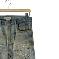 GAME PATCHWORK BORO DENIM JEANS PANTS LIKE KAPITAL Recommended Size S (Small) Waist : 31 inch Length pants(out) : 41 inch Material: Cotton 100% Good Condition ATTENTION : Please pay close attention to measurements provided. Do not rely on tag size as pre-worn items may have been altered, stretched or shrunk & vintage sizes do not directly translate the modern sizes.The best way to ensure a correct fit is to compare our measurements with the measurements of a similar item that you know fits you well.Please enlarge the photos for clearer image. WE ARE USING DHL EXPRESS, IT TAKES 3-5 DAYS ONLY TO ARRIVE. PLEASE LEAVE YOUR PHONE NUMBER ON THE NOTE WHILE MAKE A PURCHASE. Etc: Don’t Worry About Customs Tax or Fees. I usually Declare all Items as ‘Gift’ & Declare Value of Item Lower than Original Price. All Items are Sold “AS IS” so Please be Sure to Read The Entire Description and Look at All The Pictures. Any Question and More Details Please Don’t Hesitate to Contact Me. Code H47