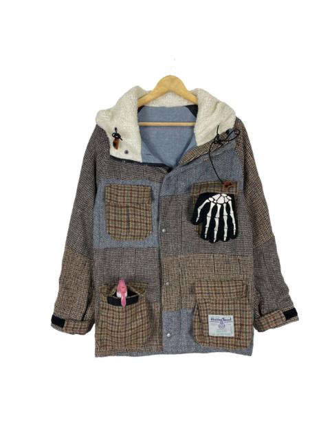 ☀️HARRIS TWEED PATCHWORK HOODIE FUR JACKET