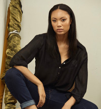 Black Double Silk Chiffon Sheer Andrea Blouse