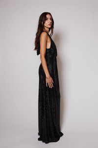 Made to Order: Made from luxurious large crystal on knit, our Hooded Crystal Gown is a timeless gown for any black to event. Featuring a 'knotted' v neck detail, a cowl draped hood and slinky bottom skirt. Wear with the hood up for an edgy look and down for a beautiful cowl back detail. Made in New York City Crystal Knit Invisible Zipper Delivery between 4/1/23-4/15/23 Sizing : XS-XXL