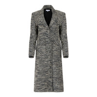 Modern and sleek, soon to be your new favorite piece of outerwear, our Jackie O Oversized Coat, made of mid weight Italian Tweed with hints of navy, white and gold. Pair with jeans and a tee daytime or wear over your favorite slip dress for cocktail hour for a night out in the city. Available with in multiple colors. DETAILS Made in New York City Material: Metallic Wool Oversized fabric covered buttons Patch pockets Fully lined Below-knee length Oversized fit SIZING XS-XL CARE Dry Clean Only