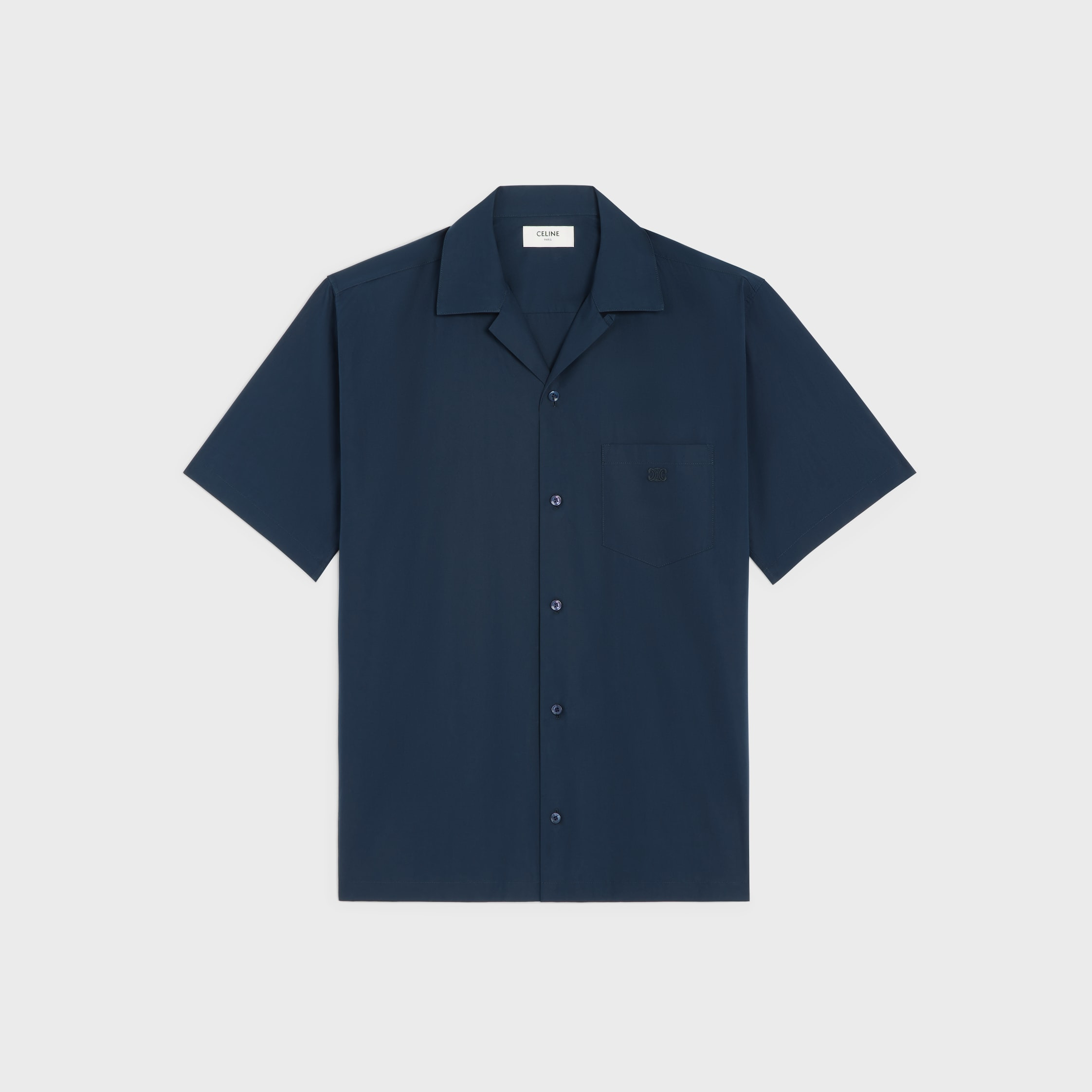 DETAILS 100% COTTON TRIOMPHE EMBROIDERY LOOSE FIT OPEN COLLAR SHORT SLEEVES 1 PATCH POCKET ON THE CHEST 5 MOTHER-OF-PEARL BUTTONS MADE IN PORTUGAL REFERENCE : RC0890Z74.07NI