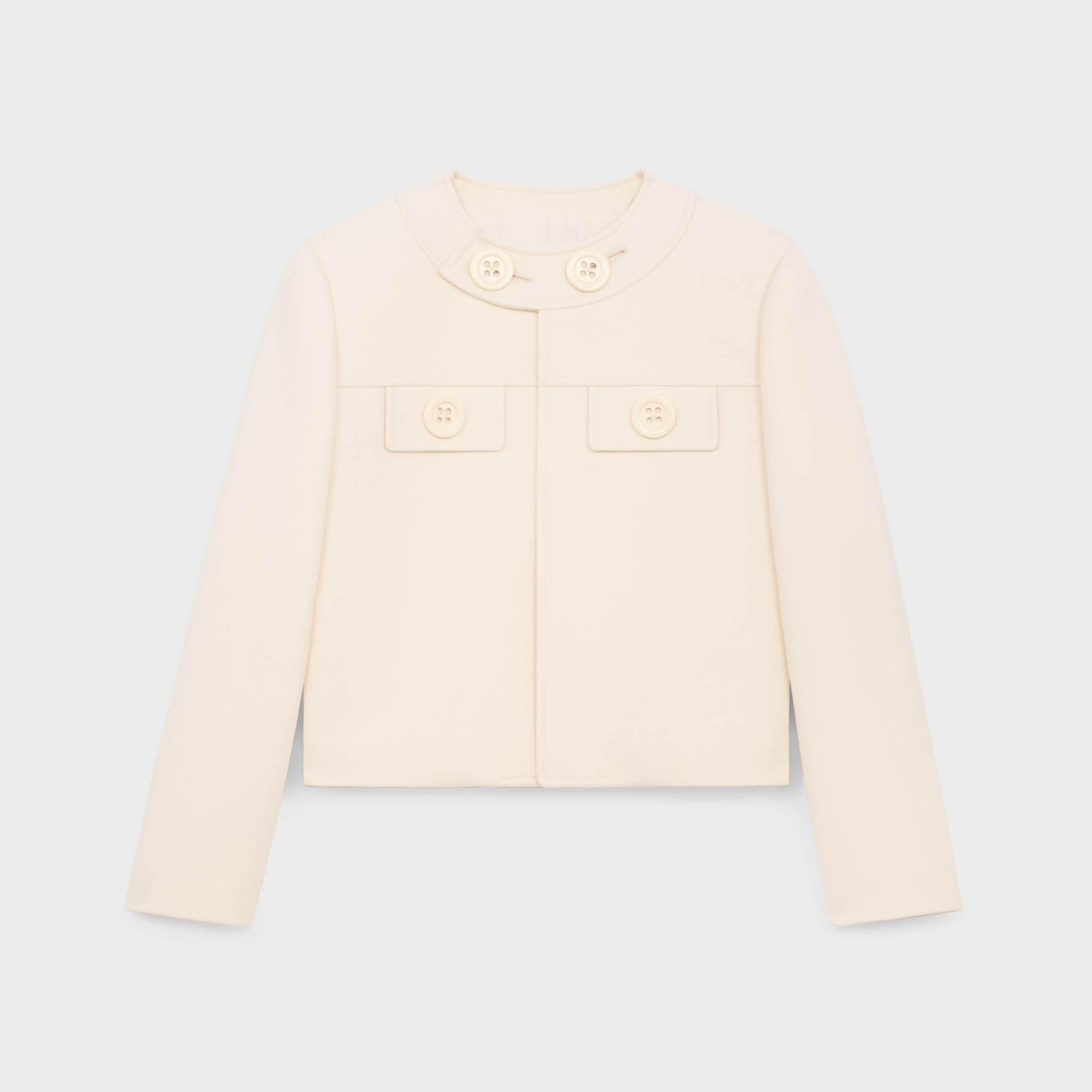 DETAILS 80% WOOL 20% SILK LINING 51% MODAL 49% VISCOSE CLASSIC FIT TAILORED WITH SHOULDER PADS PURE COLLAR 2 FLAP POCKETS ON THE CHEST 2 MAXI BUTTONS 1 MAXI BUTTON ON THE POCKET MADE IN ITALY REFERENCE : RV0450794.12CR