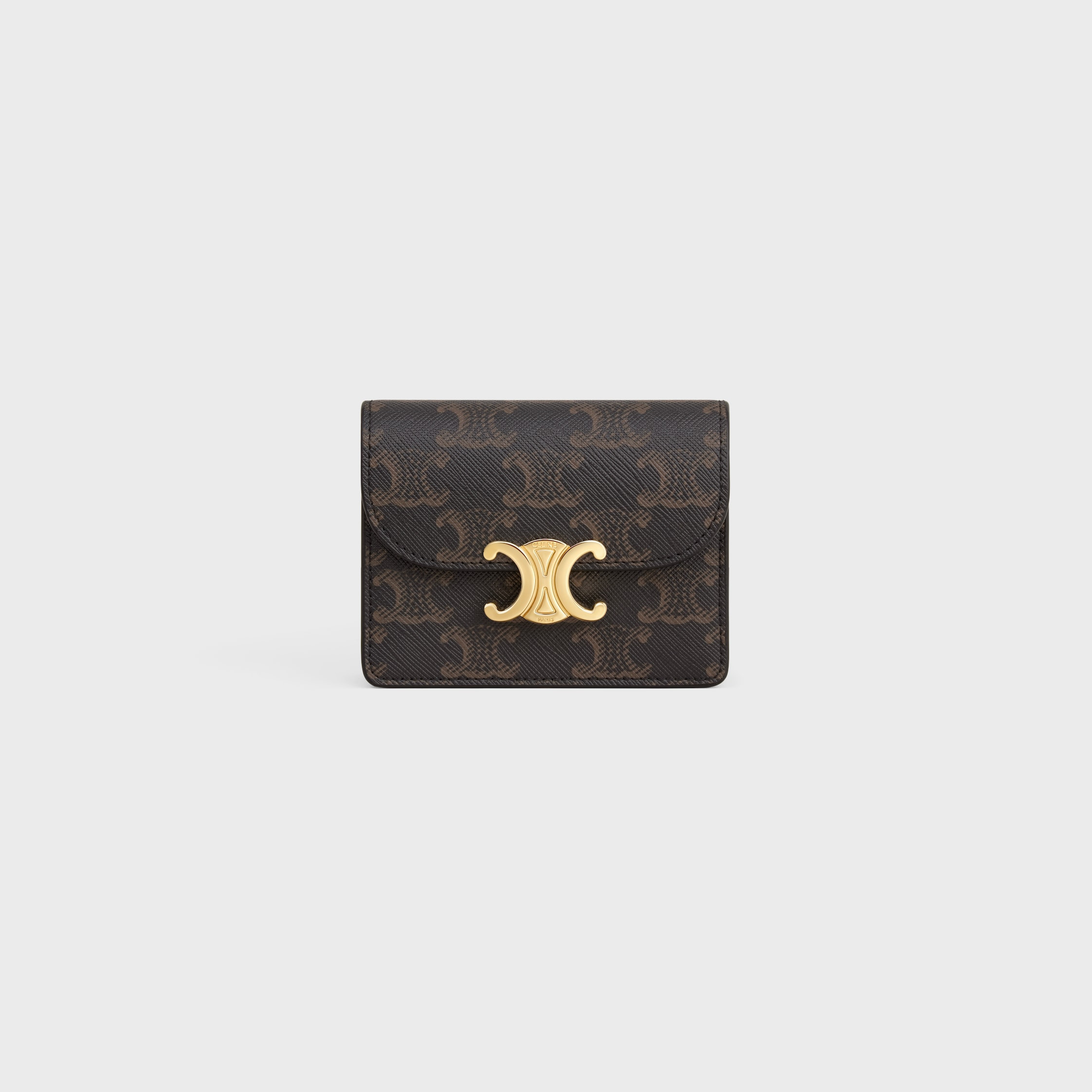DETAILS 4.1 X 3.4 X 1.2 IN (10.5 X 8.5 X 3 CM) TRIOMPHE METALLIC SNAP BUTTON CLOSURE TWO GUSSET COMPARTMENTS ONE FLAT POCKET THREE CREDIT CARD SLOTS REFERENCE : 10N062DB7.04LU
