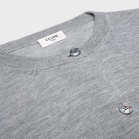 DETAILS 100% CASHMERE TRIOMPHE EMBROIDERY CLASSIC FIT CREW NECK RIBBED TRIM 5 CELINE-ENGRAVED MOTHER-OF-PEARL BUTTONS MADE IN ITALY REFERENCE : RY0O00V43.09GG