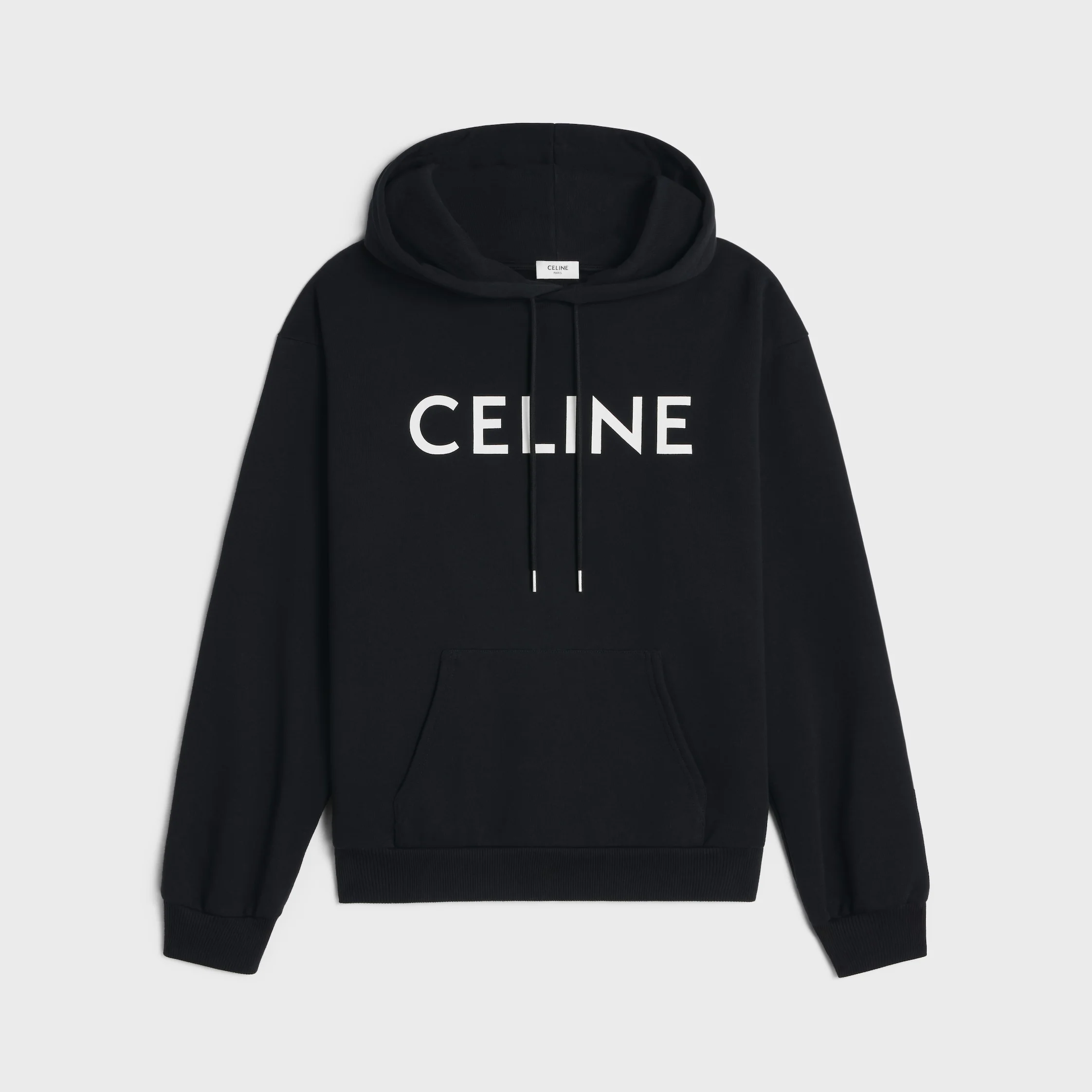 LOOSE HOODIE WITH CELINE PRINT IN COTTON FLEECE DETAILS 100% COTTON CELINE PRINT LOOSE FIT HOOD WITH ADJUSTABLE DRAWSTRINGS AND CELINE PARIS-ENGRAVED METAL AGLETS RIBBED TRIM 1 KANGAROO POCKET MADE IN ITALY REFERENCE : 2Y321670Q.38AW