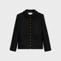DETAILS 62% CASHMERE 32% WOOL 4% SILK 2% POLYAMIDE TAILORED WITH SHOULDER PADS CLAUDINE COLLAR 2 PATCH POCKETS BRAIDED PIPING DETAILS 12 CELINE-ENGRAVED BUTTONS 4 CELINE-ENGRAVED BUTTONS ON THE CUFFS MADE IN ITALY REFERENCE : RV0VV593V.38NO
