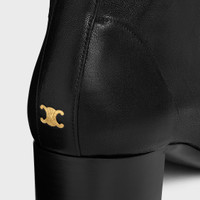 DETAILS 100% LAMBSKIN 2.2 IN (55 MM) HEEL SQUARE STACKED LEATHER HEEL ALMOND TOE SHAPE PRINTED TRIOMPHE ON THE LEATHER PULL-TAB AND BEHIND THE HEEL INNER SIDE HIDDEN ZIP CLOSURE LEATHER INSOLE LEATHER OUTSOLE MADE IN ITALY REFERENCE : 365625265C.38NO