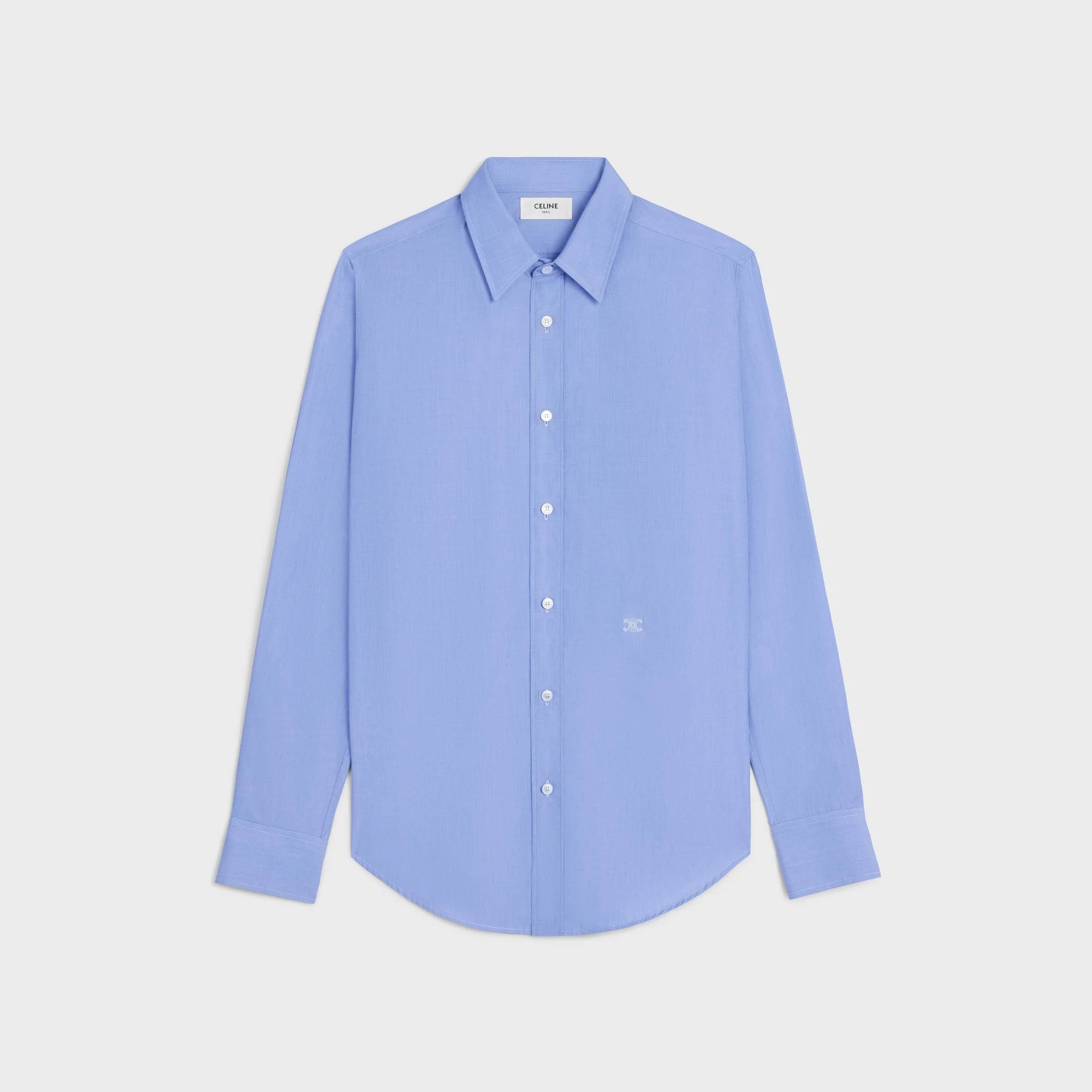 DETAILS 100% COTTON TRIOMPHE EMBROIDERY CLASSIC FIT DRUGSTORE COLLAR BUTTONED CUFFS AND BEVEL-CUT DETAILS ROUNDED HEM 7 MOTHER-OF-PEARL BUTTONS 1 MOTHER-OF-PEARL BUTTON ON THE CUFFS MADE IN PORTUGAL REFERENCE : RC0BZ2N91.07EU