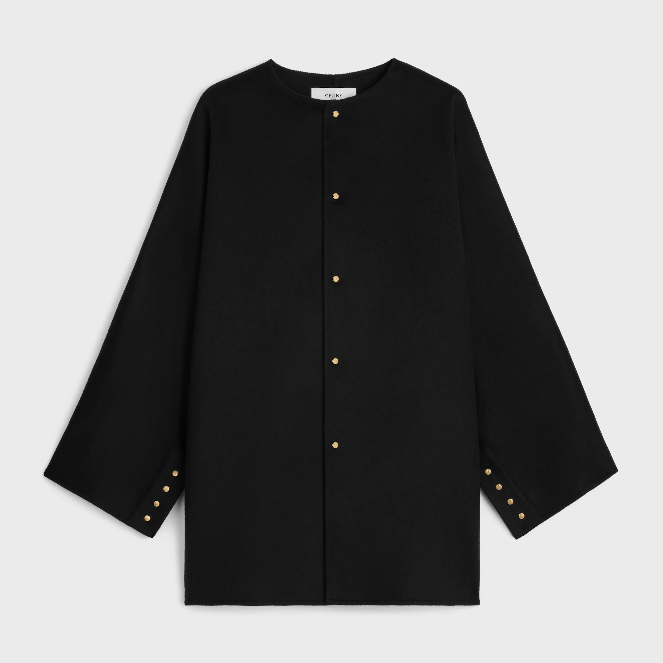 DETAILS 100% CASHMERE LOOSE FIT PURE COLLAR 5 TRIOMPHE SNAP BUTTONS 4 TRIOMPHE SNAP BUTTONS ON THE CUFFS MADE IN ITALY REFERENCE : RV13Q6700.38NO