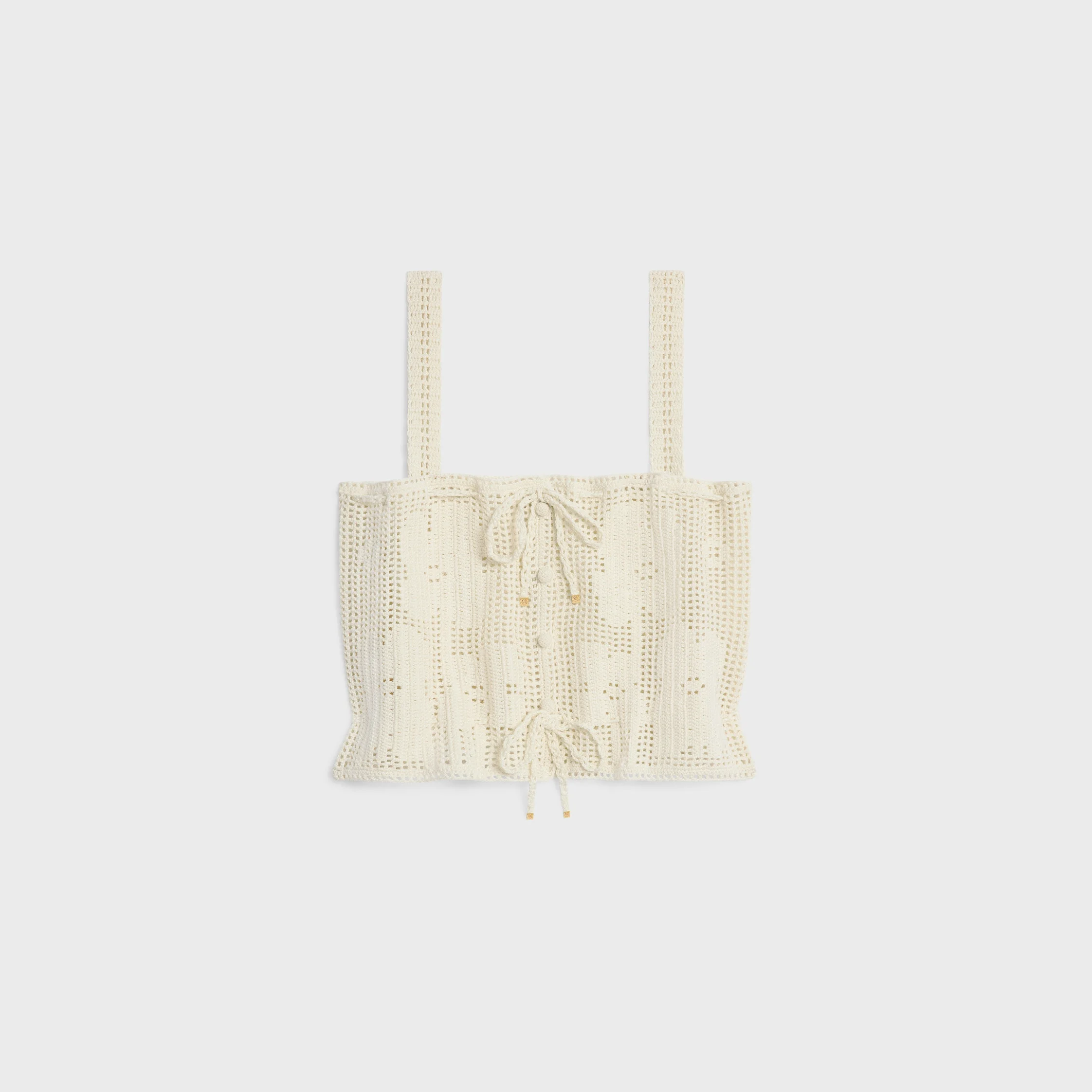CROP TOP IN FLORAL HAND-CROCHETED COTTON DETAILS 100% COTTON CLASSIC FIT CROPPED LENGTH ADJUSTABLE NECKLINE AND WAISTBAND WITH TIE CLOSURES AND TRIOMPHE AGLETS 4 CROCHET BUTTONS MADE IN ITALY REFERENCE : 2AE7M845X.01OW
