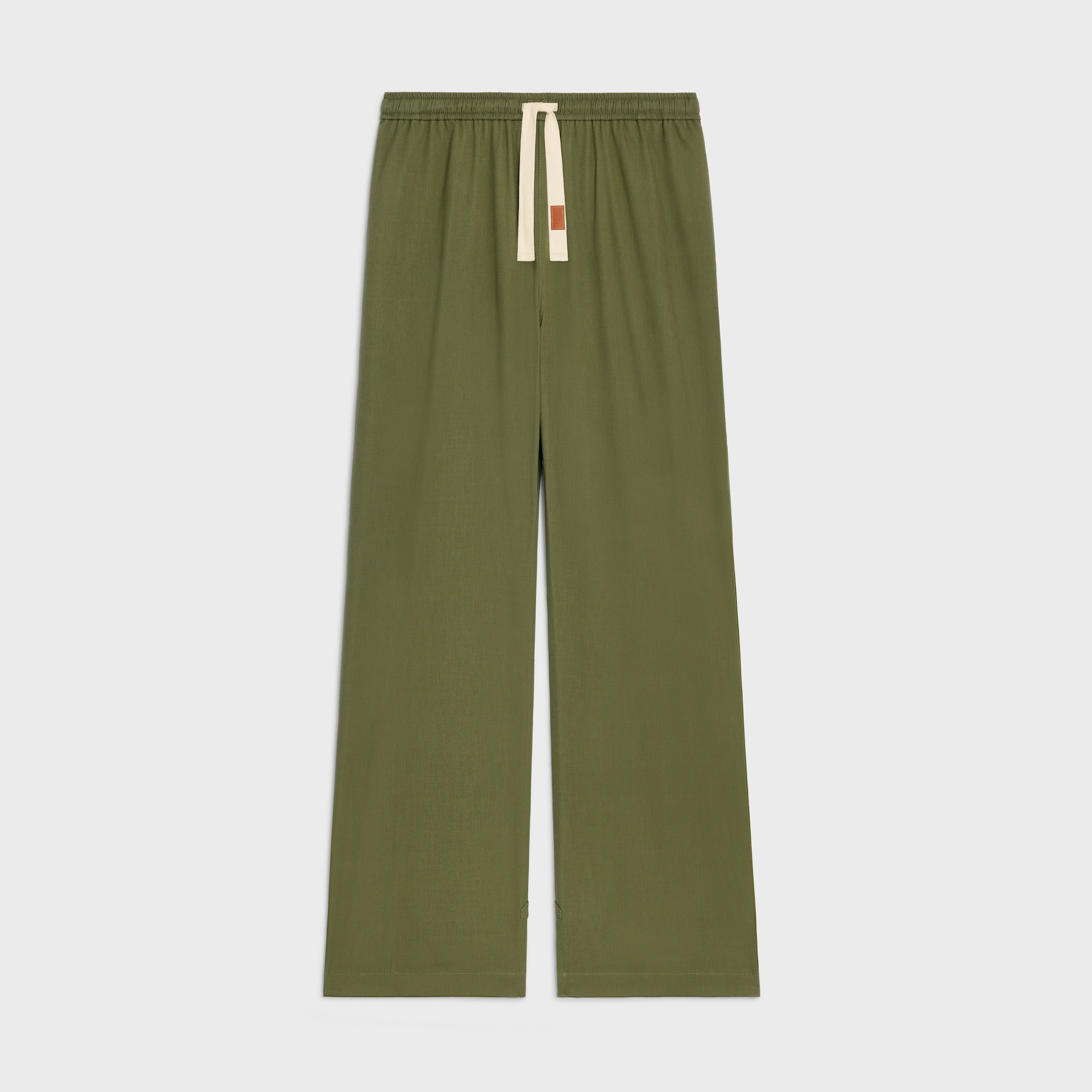 DETAILS 100% COTTON LOOSE FIT LOW-RISE STRAIGHT LEG 2 SIDE POCKETS VENT ON THE BOTTOM OF EACH LEG ELASTICATED WAISTBAND WITH ADJUSTABLE COTTON DRAWSTRING WITH LEATHER CELINE PATCH MADE IN ITALY REFERENCE : RP07U0S91.02KK