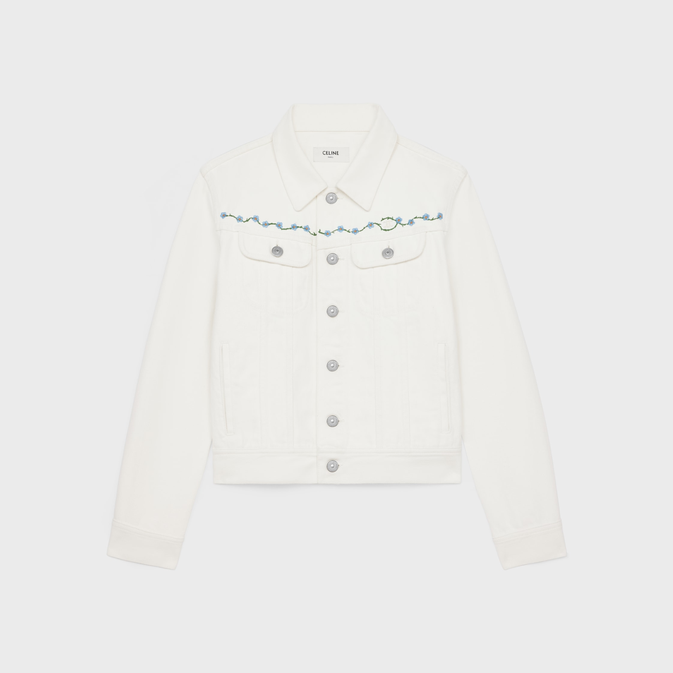 DETAILS 100% COTTON RAW WASH FLOWERS AND TRIOMPHE EMBROIDERIES CLASSIC FIT SHIRT COLLAR 2 FLAP CHEST POCKETS 2 WELT POCKETS 2 ADJUSTMENT TABS ON THE BACK 6 CELINE JEANS-ENGRAVED BUTTONS CELINE JEANS-ENGRAVED BUTTONS ON THE POCKET AND ADJUSTMENT TAB 1 CELINE JEANS-ENGRAVED BUTTON ON THE CUFFS MADE IN ITALY REFERENCE: RV0KO360W.07IA