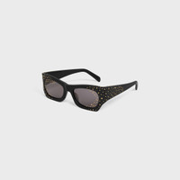 DETAILS TEMPLE LENGTH 5.5 IN (14 CM) LENS WIDTH 2 IN (5.2 CM) NOSE BRIDGE WIDTH 0.8 IN (1.9 CM) ACETATE WITH CRYSTALS AND METAL FRAME GRAPHIC FRAME SMOKE LENSES PROTECTS FROM UVA AND UVB CELINE SIGNATURE ON TEMPLES HAND-PLACED STUDS AND STRASS ON THE FRAME AND LENSES REFERENCE : 4S333CPSM.38NO