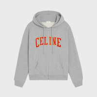 DETAILS 100% COTTON CELINE PATCH LOOSE FIT HOOD WITH ADJUSTABLE DRAWSTRING AND CELINE PARIS-ENGRAVED METAL AGLETS 1 SPLIT KANGAROO POCKET RIBBED TRIM ZIP CLOSURE MADE IN ITALY REFERENCE : RY0HG670Q.GBZ8