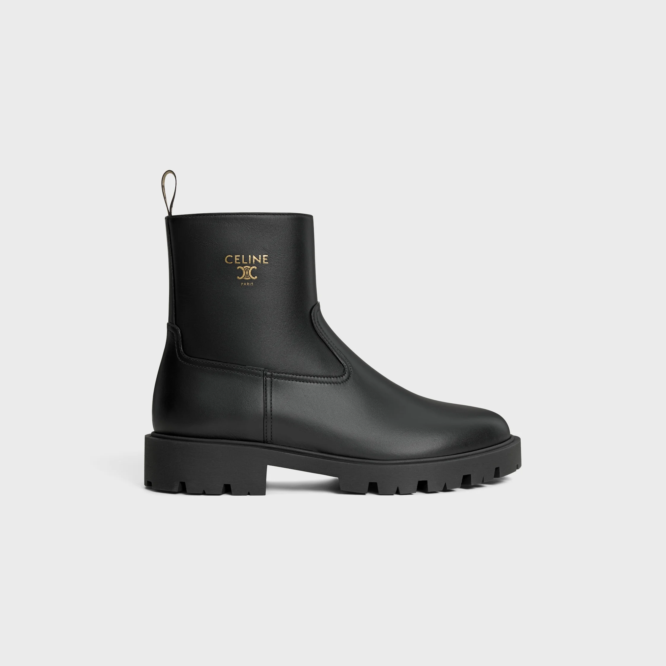 DETAILS 100% CALFSKIN 100% CALFSKIN LINING ROUND TOE SHAPE EMBOSSED GOLD “CELINE PARIS” ON THE BACK OF THE BOOT DEBOSSED "CELINE TRIOMPHE PARIS"ON THE SIDE INNER NYLON ZIP WITH ENGRAVED "CELINE" PULL-ZIP SIDE ZIP CLOSURE LEATHER INSOLE RUBBER OUTSOLE WITH LEATHER WELT MADE IN ITALY REFERENCE : 365233554C.38NO
