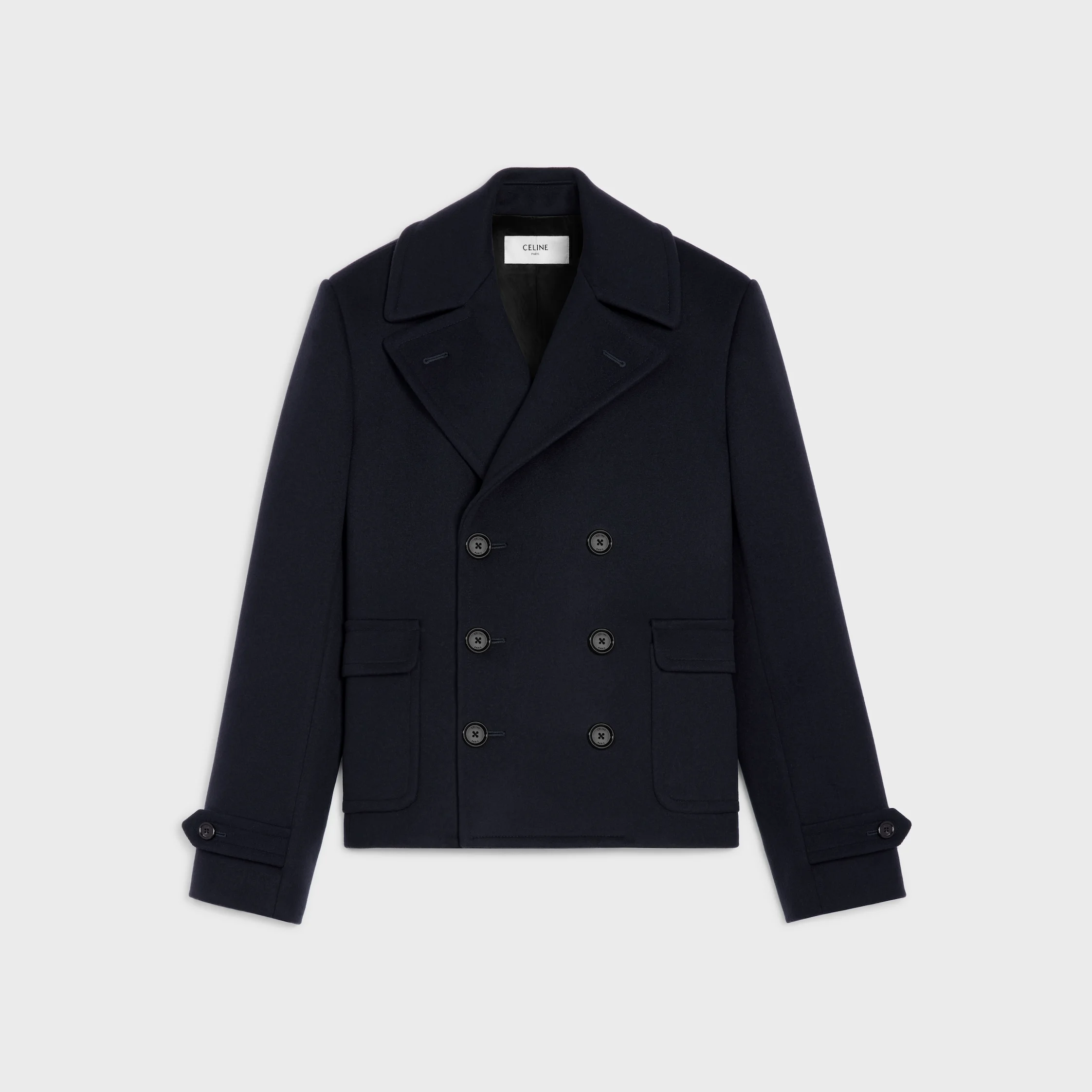 DETAILS 100% CASHMERE WOOL CLASSIC FIT NOTCH COLLAR 2 PATCH POCKETS WITH FLAP 2 ADJUSTMENT TABS ON THE CUFFS 6 CELINE-ENGRAVED HORN BUTTONS 2 CELINE PARIS-ENGRAVED HORN BUTTON ON THE ADJUSTMENT TAB MADE IN ITALY REFERENCE : RM03T943C.07DN