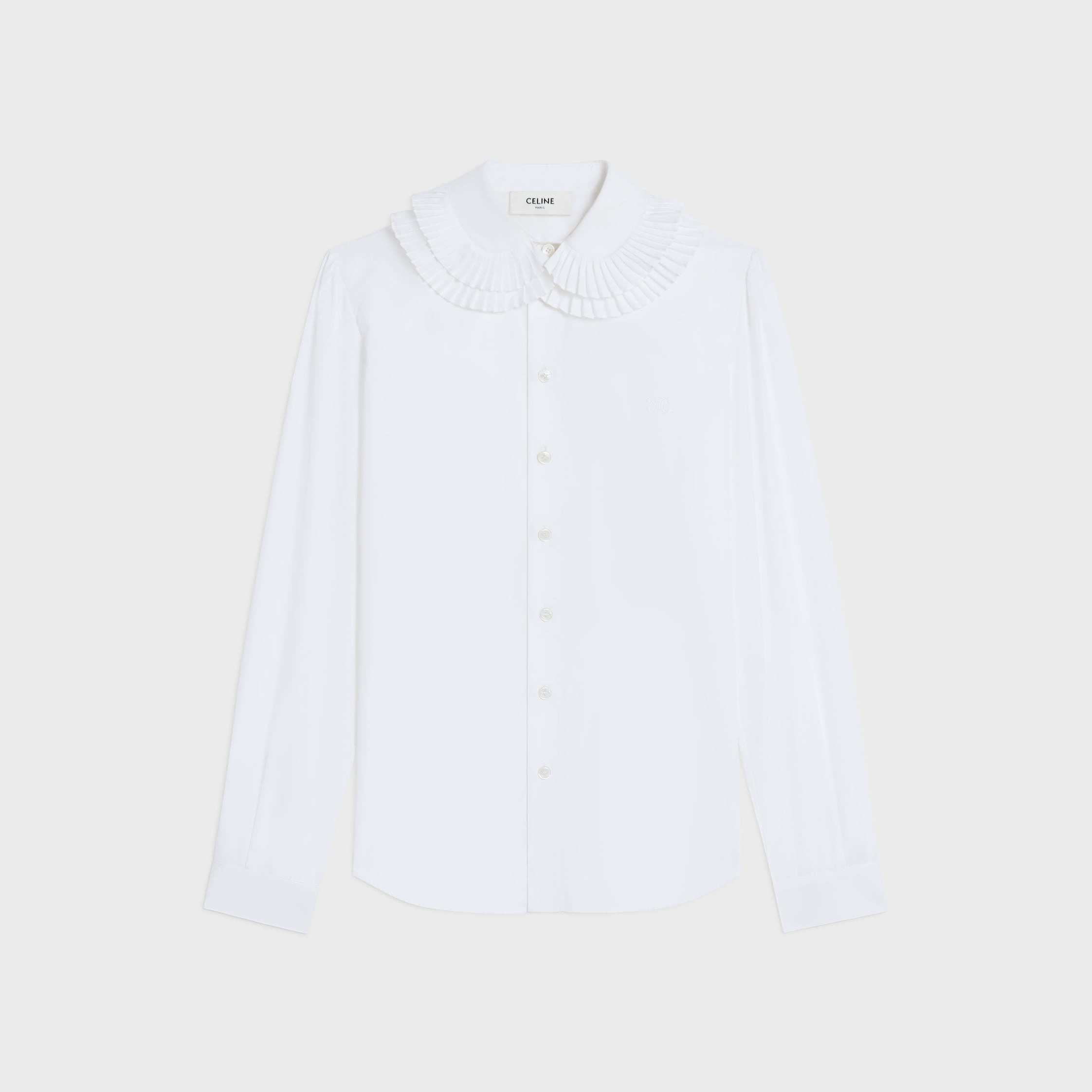 DETAILS 100% COTTON TRIOMPHE EMBROIDERY PLEATED DOUBLE CLAUDINE COLLAR BUTTONED CUFFS 8 MOTHER-OF-PEARL BUTTONS 1 MOTHER-OF-PEARL BUTTON ON THE CUFFS MADE IN ITALY REFERENCE : RC07T0T01.01BC