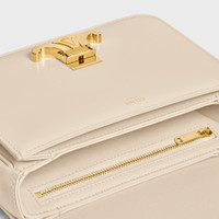 DETAILS 7.3 X 5.3 X 2.8 IN (18.5 X 13.5 X 7 CM) CALFSKIN LAMBSKIN LINING GOLD FINISHING CROSS-BODY AND SHOULDER CARRY TRIOMPHE METALLIC CLOSURE THREE INNER COMPARTMENTS ONE INNER ZIPPED POCKET ONE INNER FLAT POCKET ADJUSTABLE STRAP WITH A MINIMUM DROP 13.7 IN (35 CM) AND MAXIMUM DROP 19.6 IN (50 CM) REFERENCE : 188423BF4.01CR