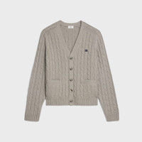 CLASSIC CABLE-KNIT CARDIGAN WITH TRIOMPHE EMBROIDERY IN CASHMERE DETAILS 100% CASHMERE LEATHER MATERIAL 100% GOATSKIN TRIOMPHE EMBROIDERY CLASSIC FIT V-NECK LONG RAGLAN SLEEVES RIBBED TRIM 2 WELT POCKETS 2 SUEDE ELBOW PATCHES 5 CELINE PARIS-ENGRAVED MOTHER-OF-PEARL BUTTONS MADE IN ITALY REFERENCE : 2AD5G362W.08GC