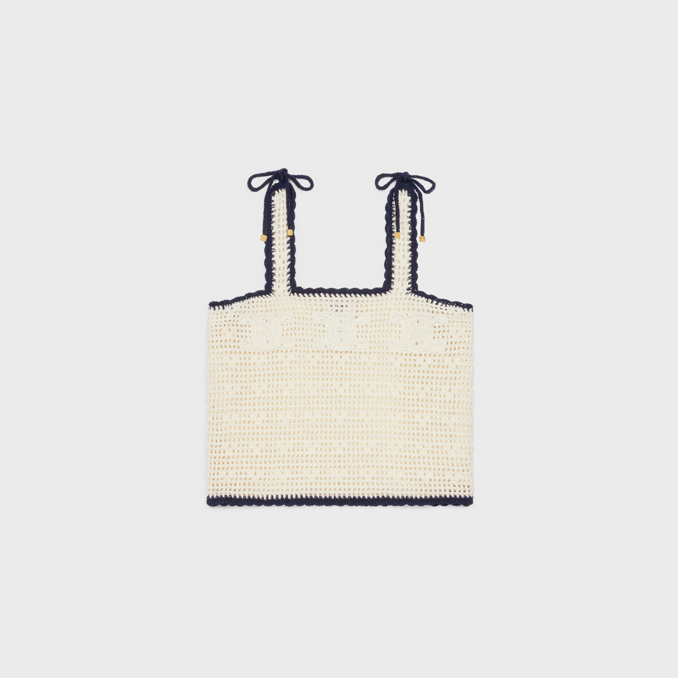 DETAILS 100% COTTON HAND-CROCHETED TRIOMPHE EMBROIDERY CLASSIC FIT CROPPED LENGTH KNOTTED SHOULDER STRAPS MADE IN ITALY REFERENCE: RY03L0089.01OW