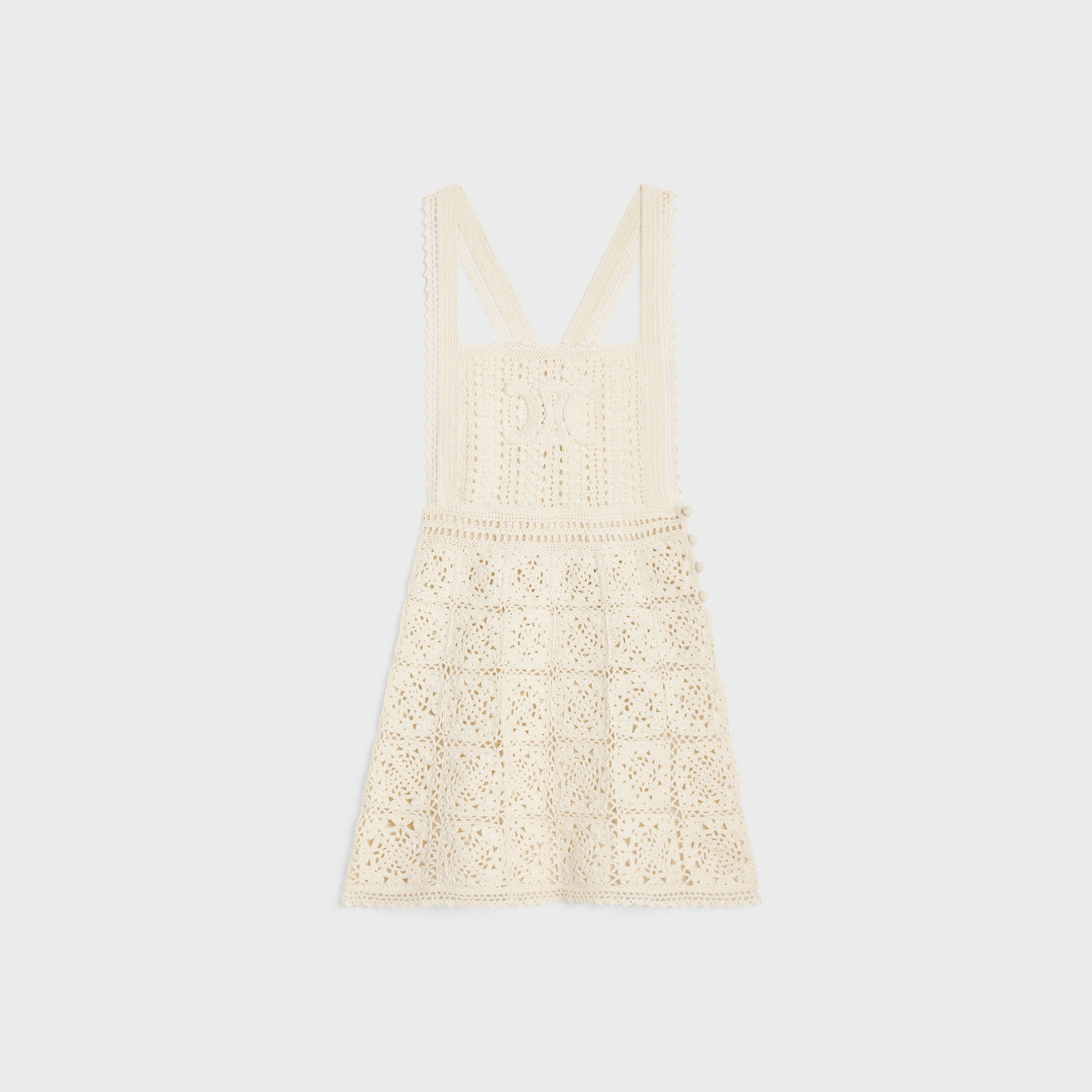 MINI DRESS WITH TRIOMPHE EMBROIDERY IN HAND-CROCHETED COTTON DETAILS 100% COTTON CROCHET TRIOMPHE EMBROIDERY CLASSIC FIT MINI LENGTH OPEN BACK WITH CROSS-BACK SHOULDER STRAPS 4 CROCHET BOUTONS MADE IN ITALY REFERENCE : 2AE9K717X.01OW