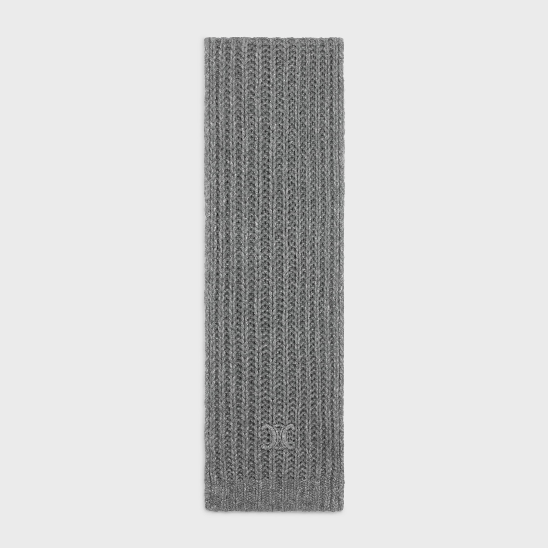 SCARF WITH TRIOMPHE EMBROIDERY IN RIBBED SILK, CASHMERE AND WOOL DETAILS 37% CASHMERE 37% WOOL 26% SILK 11.0 X 68.9 IN (28 X 175 CM) TRIOMPHE EMBROIDERY MADE IN ITALY REFERENCE : 2ADOO912Z.09GR