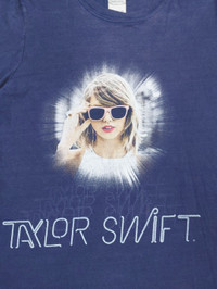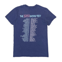 Authentic Taylor Swift The 1989 World Tour 2015 Concert Band Merch Double-Sided Official Licensed Short Sleeve Blue Navy T-Shirt ** This is not new reproductions ** - CONDITION - Used - Good Minor flaws or signs of wear, to be noted in the description and photos - FLAWS - Graphic Little Cracked / Faded / 4 Tiny Pin Holes - Size.S - Tag states Size S label Measures the actual Size S - SIZE SPECIFICATIONS - Approximate Measurements Pit to Pit 18 inches Length 25 inches Shoulders 14.5 inches Sleeve Lenght 7.5 inches Hem 18 inches - DETAILS - Tag : Gildan Made In Bangladesh Material : 100% Cotton Double-Stitch Tubular (Without Side-Seamed) Release Date : 2015 - SHIPPING - Buyers from the United States It usually takes 7-14 days for the product to reach you - PLEASE NOTE - * Differences in color should be acceptable due to the light and screen ** Please make sure you check the measurements yourself before purchase If you have any other questions please feel free to ask me Chady Shop No.A100100
