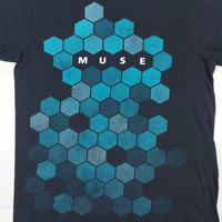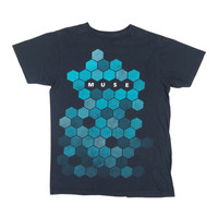 Muse Band The Resistance Hexagon Tile Official Merch Short Sleeve Black T-Shirt The product images shown are taken from the actual item - CONDITION - Used - Good Minor flaws or signs of wear, to be noted in the description and photos - FLAWS - 3 Pin Holes (Flaws In Last 2 Picture) - Size.M - Tag states Size M label Measures the actual Size M - Measurements (inches) - Pit to Pit 19" Length 26.5" Shoulders 16.5" Sleeve Lenght 7.5" Hem 19.5" - DETAILS - Tag : Muse Made In Honduras Material : 100% Cotton Double-Stitch Tubular (Without Side-Seamed) Release Date : 2012 - SHIPPING - Buyers from the United States It usually takes 7-14 days for the product to reach you - PLEASE NOTE - * Differences in color should be acceptable due to the light and screen ** Please make sure you check the measurements yourself before purchase If you have any other questions please feel free to ask me NOB14940