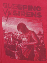 Sleeping With Sirens Band Kellin Quinn Photo Official Merch Short Sleeve Red T-Shirt The product images shown are taken from the actual item - CONDITION - Used - Fair Obvious flaws or signs of wear, to be noted in the description and photos - FLAWS - There is a tear at the neckline and a hole in the armpit. (Flaws In Last 2 Picture) - Size.L - Tag states Size L label Measures the actual Size L/XL - SIZE SPECIFICATIONS - Approximate Measurements Pit to Pit 22 inches Length 27 inches Shoulders 18.5 inches Sleeve Lenght 7.5 inches Hem 22.5 inches - DETAILS - Tag : Tultex Made In Mexico Material : 100% Cotton Double-Stitch Tubular (Without Side-Seamed) Release Date : Middle 2000's - SHIPPING - Buyers from the United States It usually takes 7-14 days for the product to reach you - PLEASE NOTE - * Differences in color should be acceptable due to the light and screen ** Please make sure you check the measurements yourself before purchase If you have any other questions please feel free to ask me Chady Shop No.E161110