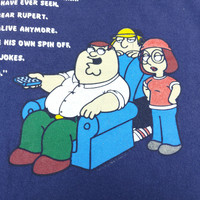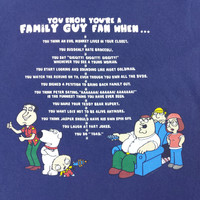 Vintage 2005 Family Guy You Know You’re A Family Guy Fan When Fox Official Under Licensed Short Sleeve Blue Navy T-Shirt The product images shown are taken from the actual item It is vintage This is not new reprints - CONDITION - Used - Good Minor flaws or signs of wear, to be noted in the description and photos - NO FLAWS - - Size.L - Tag states Size L label Measures the actual Size L/XL - Measurements (inches) - Pit to Pit 22" Length 27.5" Shoulders 21" Sleeve Lenght 7.5" Hem 22.5" - DETAILS - Tag : Delta Made In Honduras Material : 100% Cotton Double-Single-Stitch Tubular (Without Side-Seamed) Release Date : 2005 - SHIPPING - Buyers from the United States It usually takes 7-14 days for the product to reach you - PLEASE NOTE - * Differences in color should be acceptable due to the light and screen ** Please make sure you check the measurements yourself before purchase If you have any other questions please feel free to ask me NOB16280