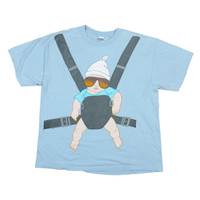 Vintage 2009 Warner Bros Hangover Movie Promo Baby Carrier Official Under Licensed Short Sleeve Blue T-Shirt The product images shown are taken from the actual item - CONDITION - Used - Fair Obvious flaws or signs of wear, to be noted in the description and photos - FLAWS - Fade Spot (Flaws In Last Picture) - Size.XL - Tag states Size XL label Measures the actual Size XL - SIZE SPECIFICATIONS - Approximate Measurements Pit to Pit 24 inches Length 28.5 inches Shoulders 23.5 inches Sleeve Lenght 8 inches Hem 25 inches - DETAILS - Tag : M&O Made In Mexico Material : 100% Cotton Double-Stitch Tubular (Without Side-Seamed) Release Date : 2009 - SHIPPING - Buyers from the United States It usually takes 7-14 days for the product to reach you - PLEASE NOTE - * Differences in color should be acceptable due to the light and screen ** Please make sure you check the measurements yourself before purchase If you have any other questions please feel free to ask me Chady Shop NOB13950