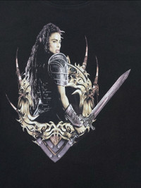 Warcraft Movie 2016 Garona Halforcen Paula Patton Never Surrender Legendary Pictures Double-Sided Official Licensed Short Sleeve Black T-Shirt The product images shown are taken from the actual item It is Authentic This is not new reprints - CONDITION - Used - Good Minor flaws or signs of wear, to be noted in the description and photos - FLAWS - Graphic Little Cracking Little Stain Hard to See (Flaws In Last Picture) - Size.M - Tag states Size M label Measures the actual Size M - SIZE SPECIFICATIONS - Approximate Measurements Pit to Pit 20 inches Length 26 inches Shoulders 17.5 inches Sleeve Lenght 7.5 inches Hem 19.5 inches - DETAILS - Tag : Warcraft MTEE Material : 100% Cotton Double-Stitch (Side-Seamed) Release Date : 2016 - SHIPPING - Buyers from the United States It usually takes 7-14 days for the product to reach you - PLEASE NOTE - * Differences in color should be acceptable due to the light and screen ** Please make sure you check the measurements yourself before purchase If you have any other questions please feel free to ask me Chady Shop No.E10260