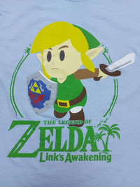 The Legend of Zelda Link's Awakening Nintendo Game Promo Licensed & Official Blue T-Shirt Condition : Used - Excellent Defect : No Defect (Size. S) Tag states Size S label Measures the actual Size S Size Specifications Pit to Pit 17.5 inches Lenght 27 inches Shoulders 17 inches Sleeve Lenght 6 inches Hem 17.5 inches Tag : The Legend of Zelda Made In Honduras Material : 100% Cotton Double-Stitch Tubular (Without Side-Seamed) Release Date : 2019 WorldWide Shipping For buyers from the United States. It usually takes 7-14 days for the product to reach you. * PLEASE NOTE THAT SLIGHT COLOR DIFFERENCE SHOULD BE ACCEPTABLE DUT TO THE LIGHT AND SCREEN * SO MAKE SURE YOU HAVE CHECKED MANUAL MEASUREMENT BEFORE PURCHASE IF YOU HAVE ANY OTHER QUESTIONS PLEASE FEEL FREE TO ASK ME Thank You For Your Support