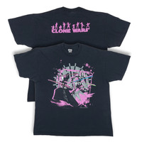 Vintage Star Wars The Clone Wars Asajj Ventress General Grievous Lucasfilm Animation Double-Sided Official Under Licensed Short Sleeve Black T-Shirt The product images shown are taken from the actual item Very Rare to find It is vintage This is not new reprints - CONDITION - Used - Good Minor flaws or signs of wear, to be noted in the description and photos - FLAWS - Graphic Little Cracking (Flaws In Picture) - Size.XL - Tag states Size XL label Measures the actual Size XL - Measurements (inches) - Pit to Pit 24" Length 29" Shoulders 23" Sleeve Lenght 8" Hem 25" - DETAILS - Tag : Star Wars Made In USA Material : 100% Cotton Double-Stitch Tubular (Without Side-Seamed) Release Date : 2008 - SHIPPING - Buyers from the United States It usually takes 7-14 days for the product to reach you - PLEASE NOTE - * Differences in color should be acceptable due to the light and screen ** Please make sure you check the measurements yourself before purchase If you have any other questions please feel free to ask me SB380
